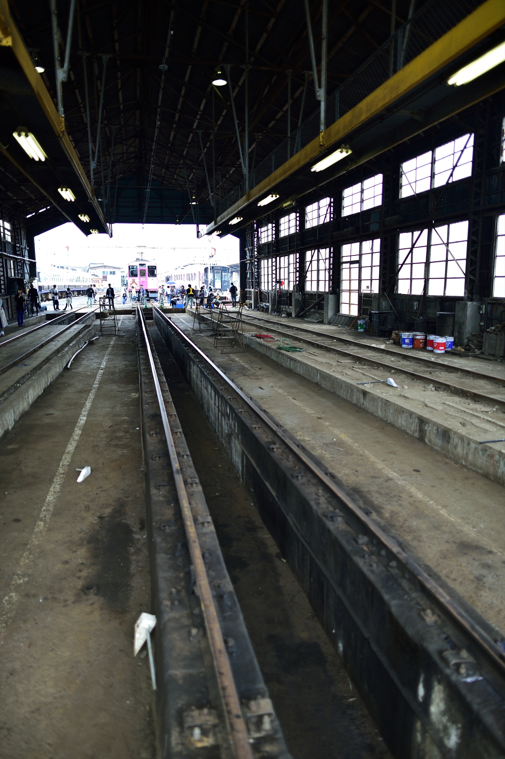 一畑電車 雲州平田駅 駅サイト祭り2016 10月16日 20kei 9年前 一畑電車 雲州平田駅 駅サイト祭り2016 に行ってきました。 構内の様子。 左側のハロウィン列車は運行中の列車です。 今年の展示車両の目玉、新車の7000系です。車内はクロスシート仕様で肘掛けは木製です。外観で中間の扉の様に見える場所は、扉として機能しないようです。起動自転車体験のコースになっていた為、車庫の中に入れる様になっていました。年季の入った工具類。パンタグラフ?謎の扉3000系は映画RAILWAYSのロケが行われた場所にいました。車両洗浄装置。 今年は、去年立入禁止だった場所が開放されていてなかなか充実した内容でした。