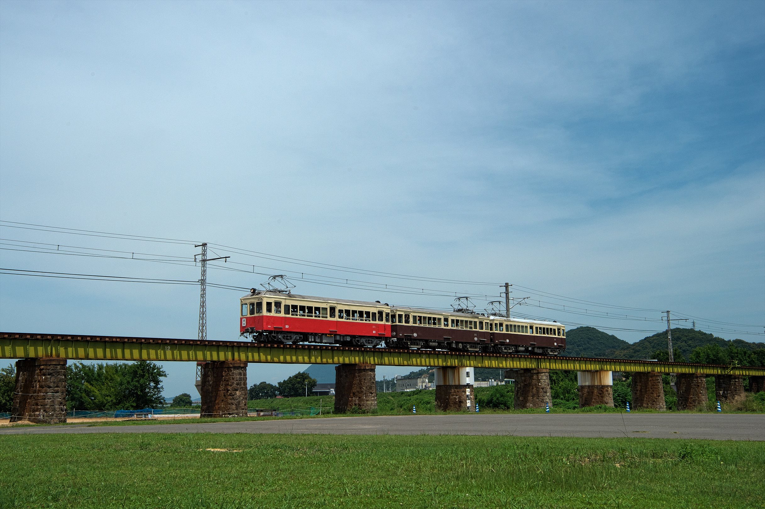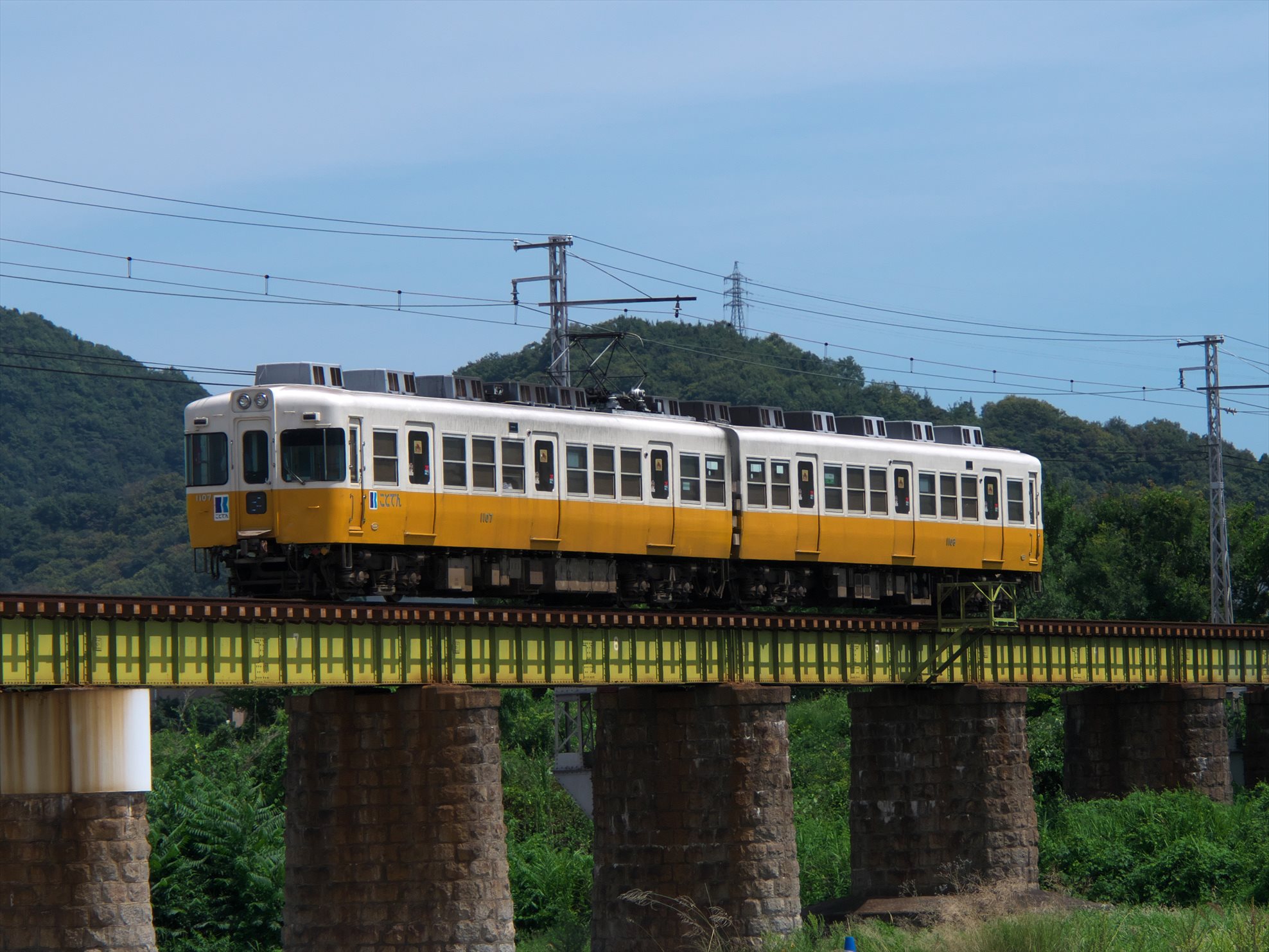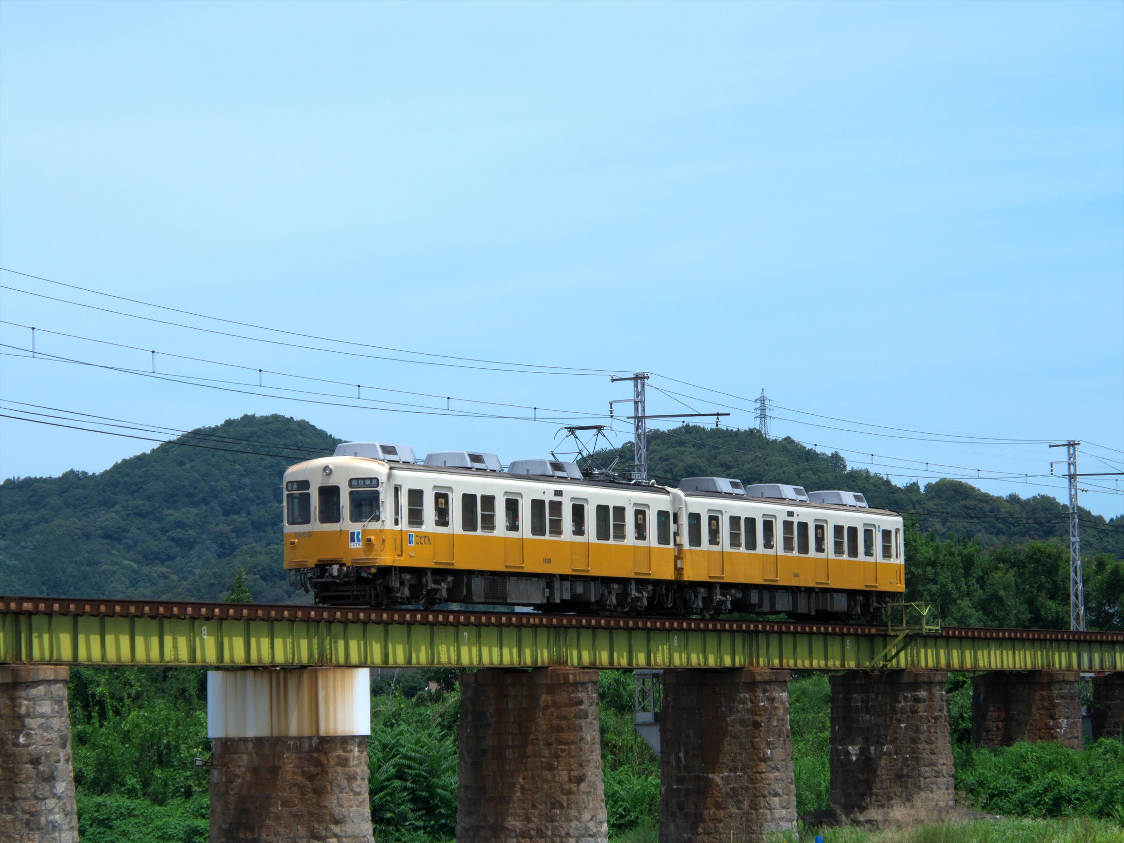 今回も琴電の超定番撮影地、榎井~羽間の鉄橋で撮影しました。
