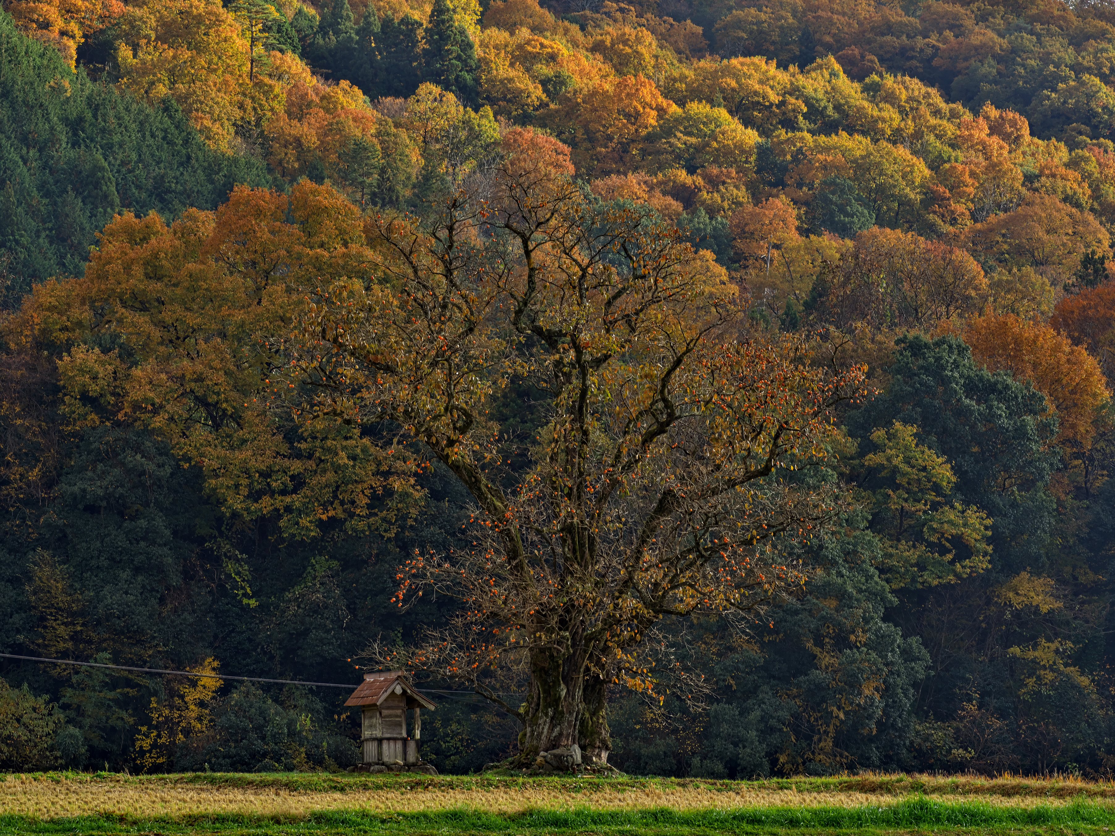以前から気になっていた柿の木を見に行きました。